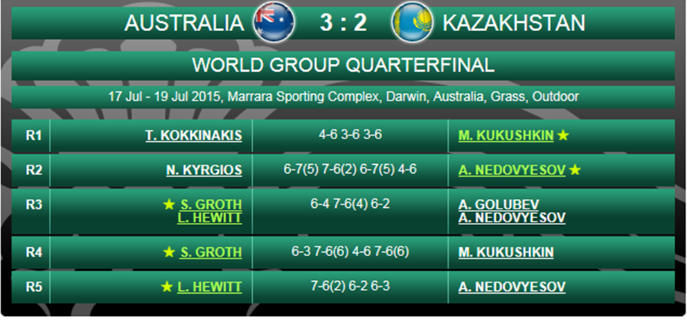 崖っぷちのオーストラリアは次のダブルス戦でサムグロスとヒューイットで勝利して、次のシングルス2戦もキリオスやコキナキスではなくて、そのままグロスとヒューイットを起用したのがすごいですよね!!