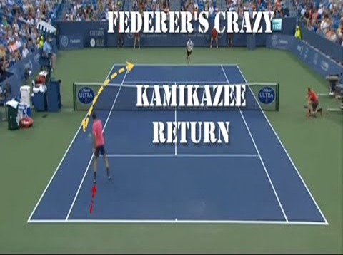 フェデラーのリスキーなサービスライン付近でのハーフボレーリターンが日本語の"kamikaze"と一部で呼ばれて話題となってます!英語のサイトだけではなくて、他の言語でも"kamikaze"で紹介されてます。こりゃそのうち定着してくるでしょうね。。。
