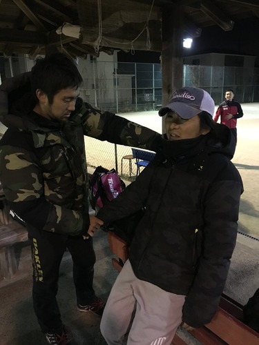 21時回ってクッソ寒いのに、なぜか半袖と7部丈のパンツでプレーしてた東。