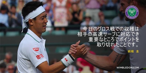 サムグロスはサーブだけという感じで、錦織強かったです。リターンが本当によかったですね。心配なのは左わき腹で、試合中も治療している場面がありました。。。良くなってくるといいですけど・・・