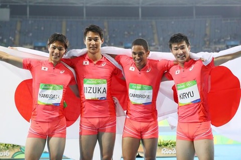 なんと、100m×リレーで日本人が銀メダル獲得!アメリカに勝ちました(結果、アメリカは失格でしたが、失格じゃなくても勝っていた)!!!