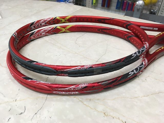 すみませんが、今回はラケットに注目していただきたいので、同じストリング・テンションでお願いします。