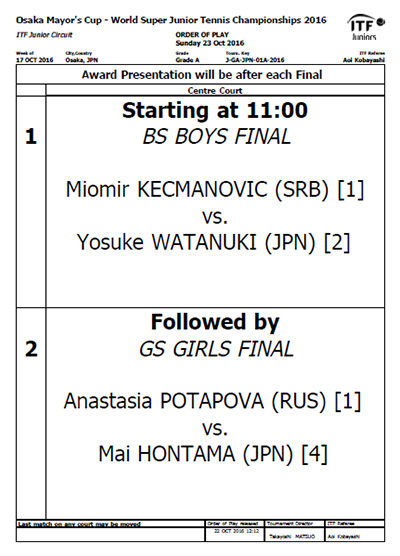 そして、明日は大阪市長杯2016世界スーパージュニアテニス選手権決勝です。