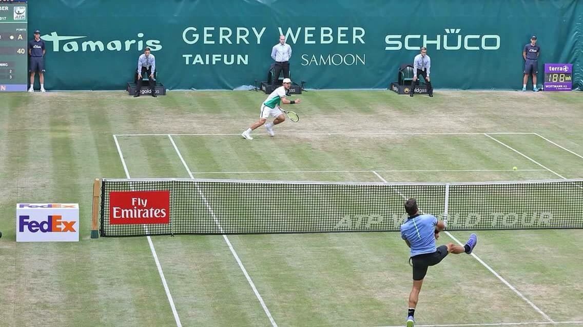 サーブを軸にネットプレーを織り交ぜてプレーし、ほぼ隙のないサービスゲームを展開しました!芝での戦い方に慣れてきていると思います。サーブが調子がどんどん上がってきているのは心強いですね!フットワークも初戦より良くなりました。