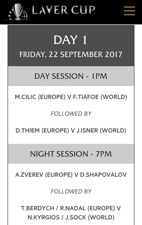 ストリームハンターでも見れると思いますが、Laver cupのホームページで見れます!良かった!