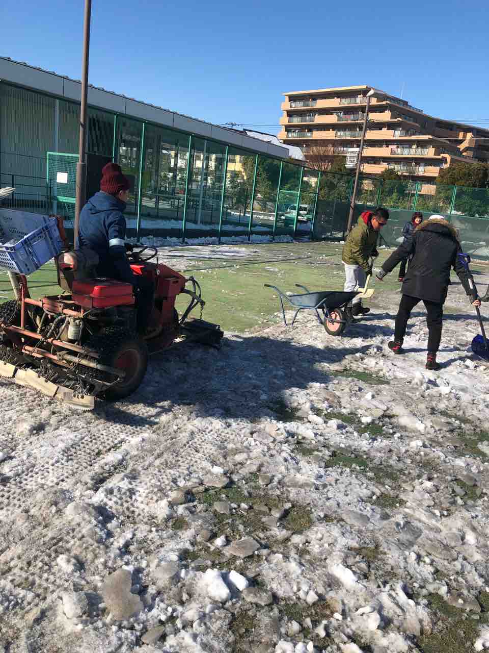 なのでテニスコートの雪かきに相当手こずっています。