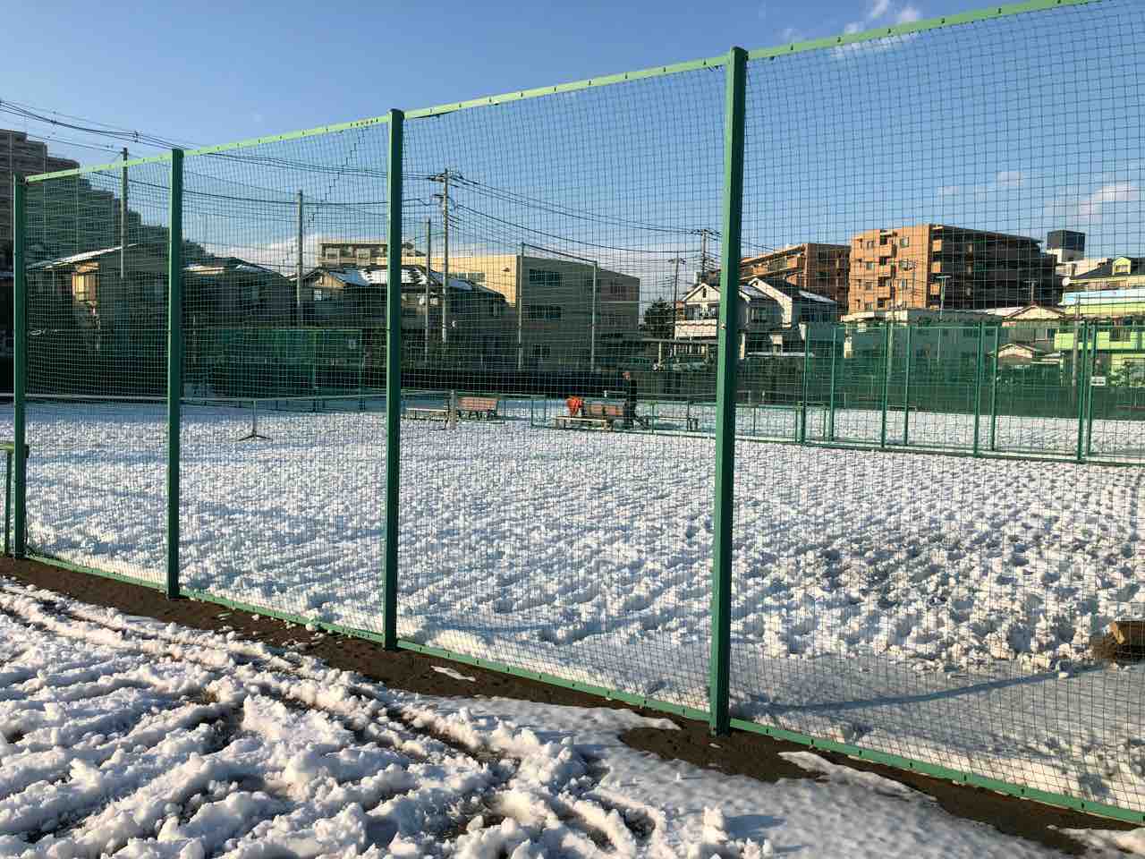 みんなでコート内の雪ををひたすら踏みます。