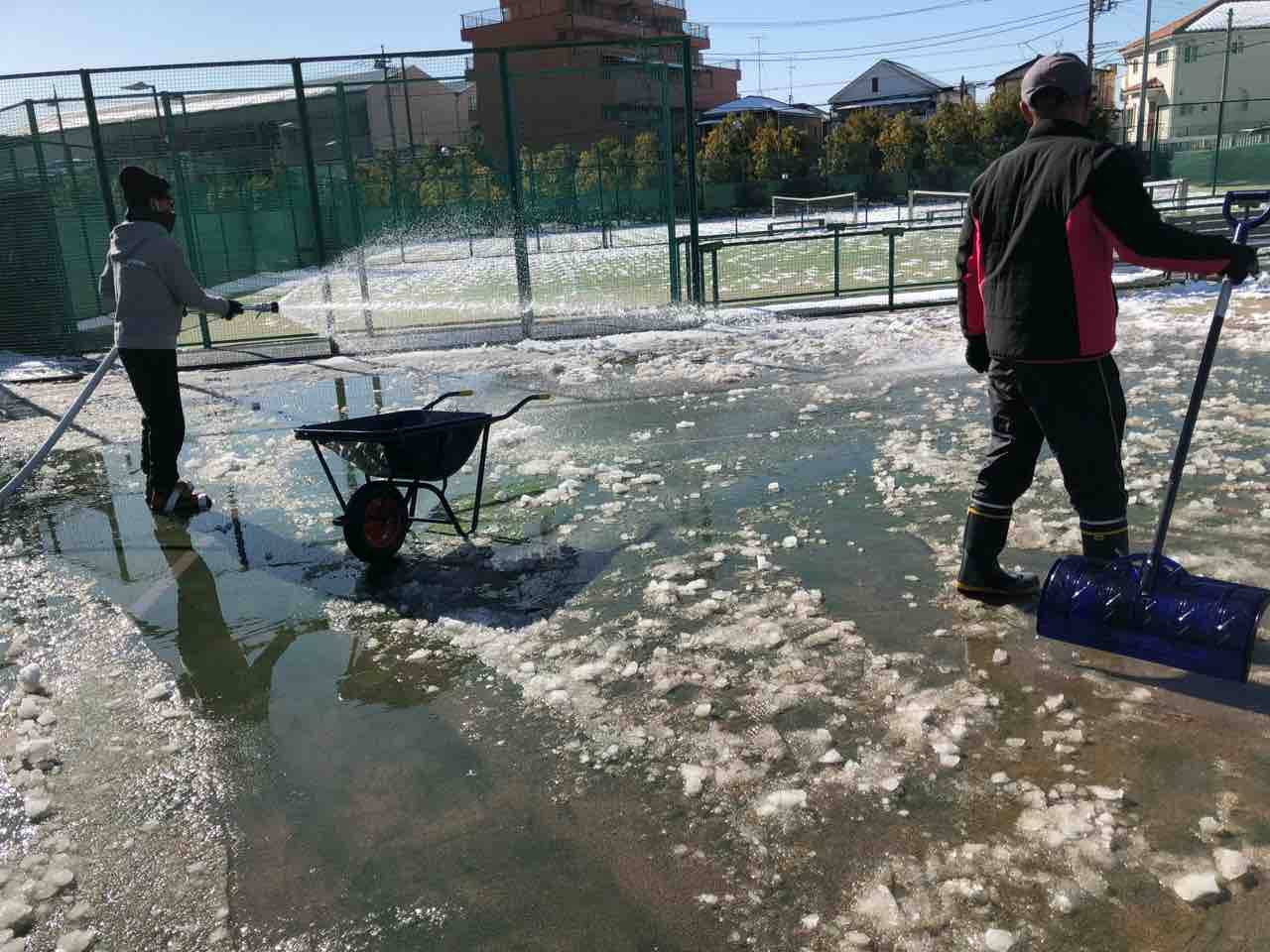 今日で雪を溶かし、砂を入れて終わるはずです。