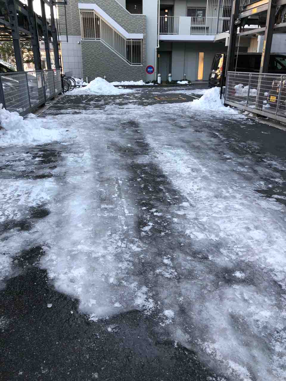 まず何よりも、自宅マンションの駐車場のこの氷。