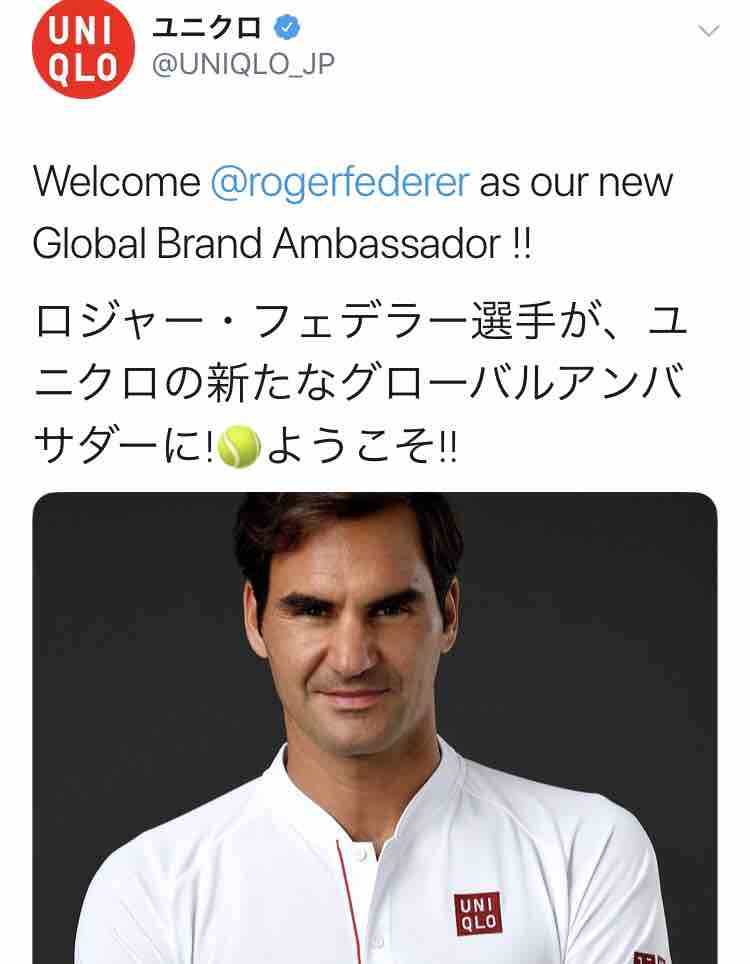 フェデラーがユニクロアンバサダーに。。。