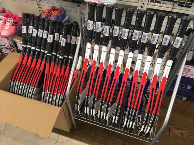 先日、関西学生選手権のお仕事だったのですが、一番張ったラケットが前モデルのVCORESV(98と100)でした。