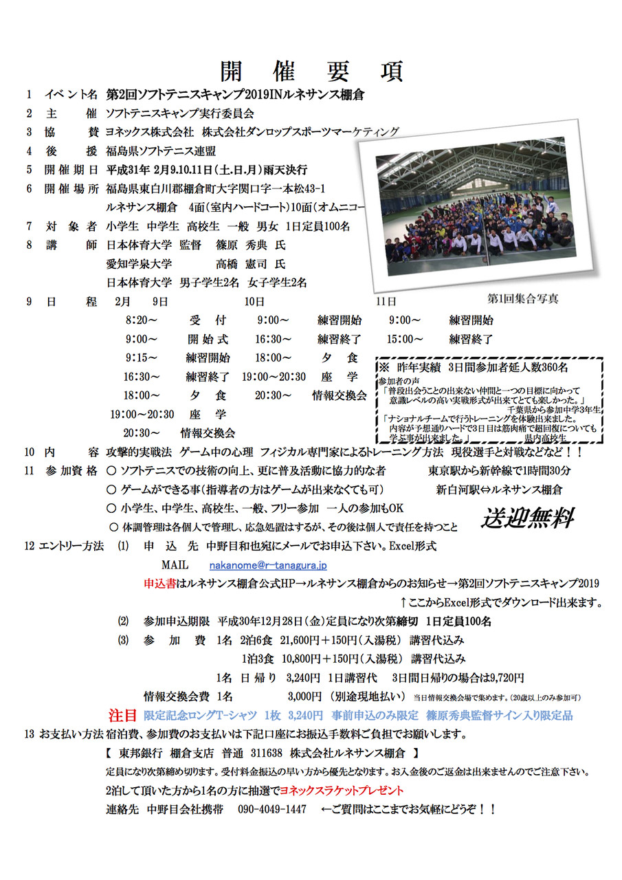 ソフトテニスキャンプ2019