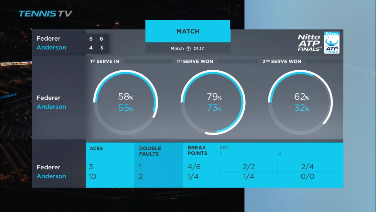 本当に嬉しい勝利でした!フェデラーはアンダーソンに同じロンドンの地でウィンブルドンの雪辱を果たし、RRを1位で突破し決勝トーナメントへ向かいます!6-4 6-3