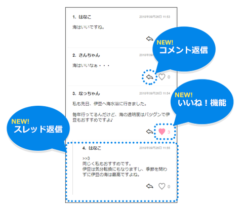 コメント返信ができるようになるのは便利ですね。さらに元のコメントに対して連なっていく仕様になります。