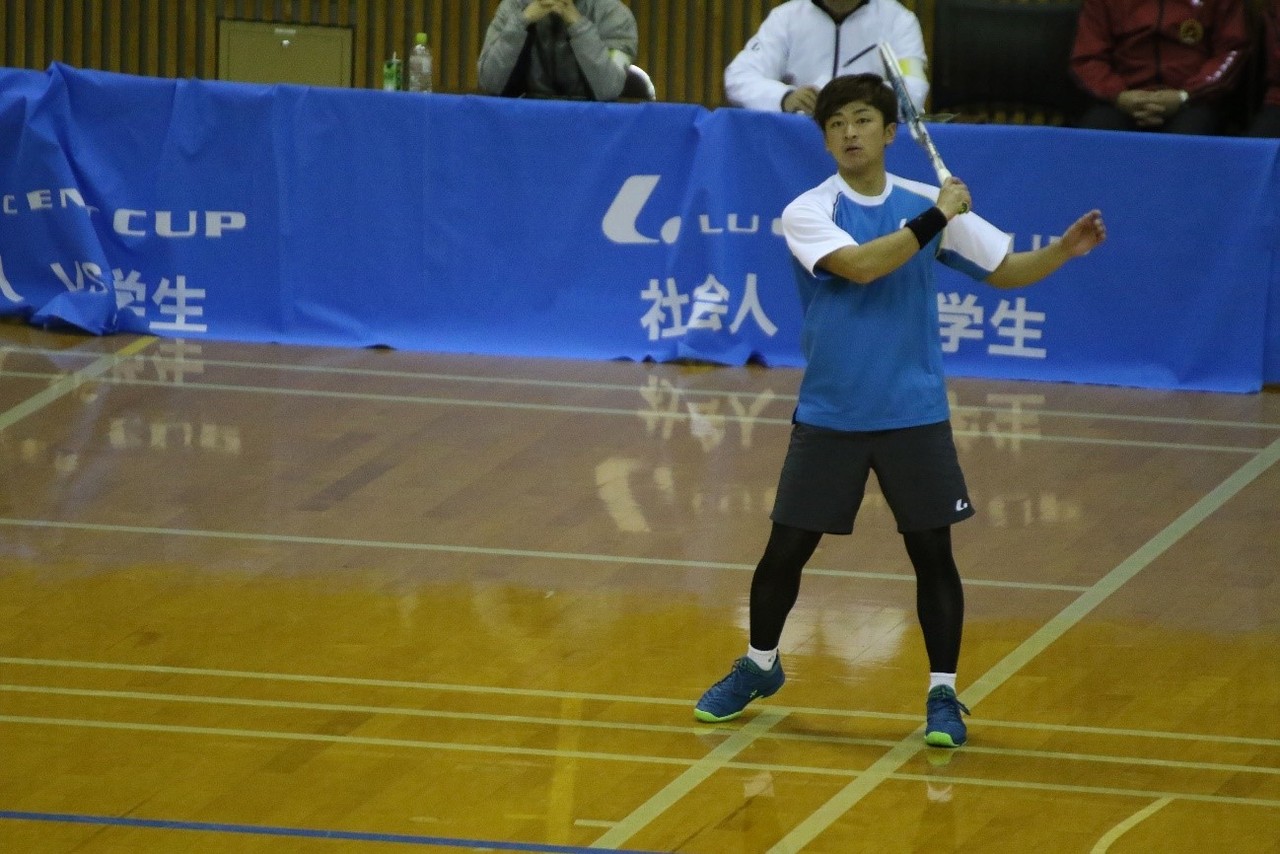 東海学生チャンピオンが全日本選手権準優勝ペアにいかなる試合を見せるかがキーとなった。片山・高木も健闘するも中本・鈴木が圧巻の試合運びで④-0で制し対抗戦を閉めた。
