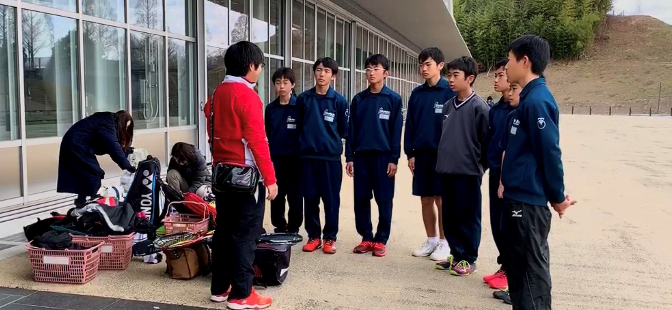 学校のコートが使えないそうで
