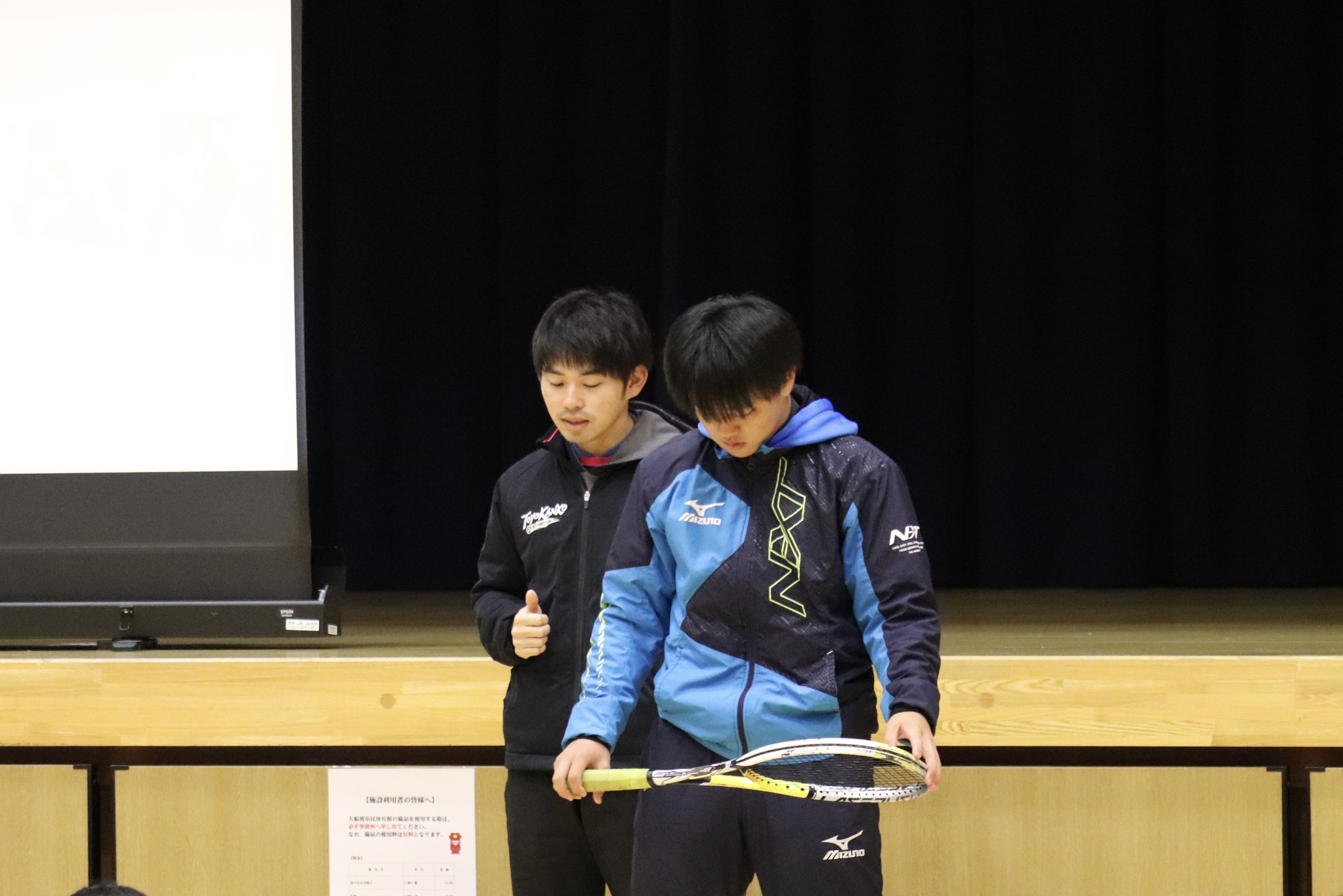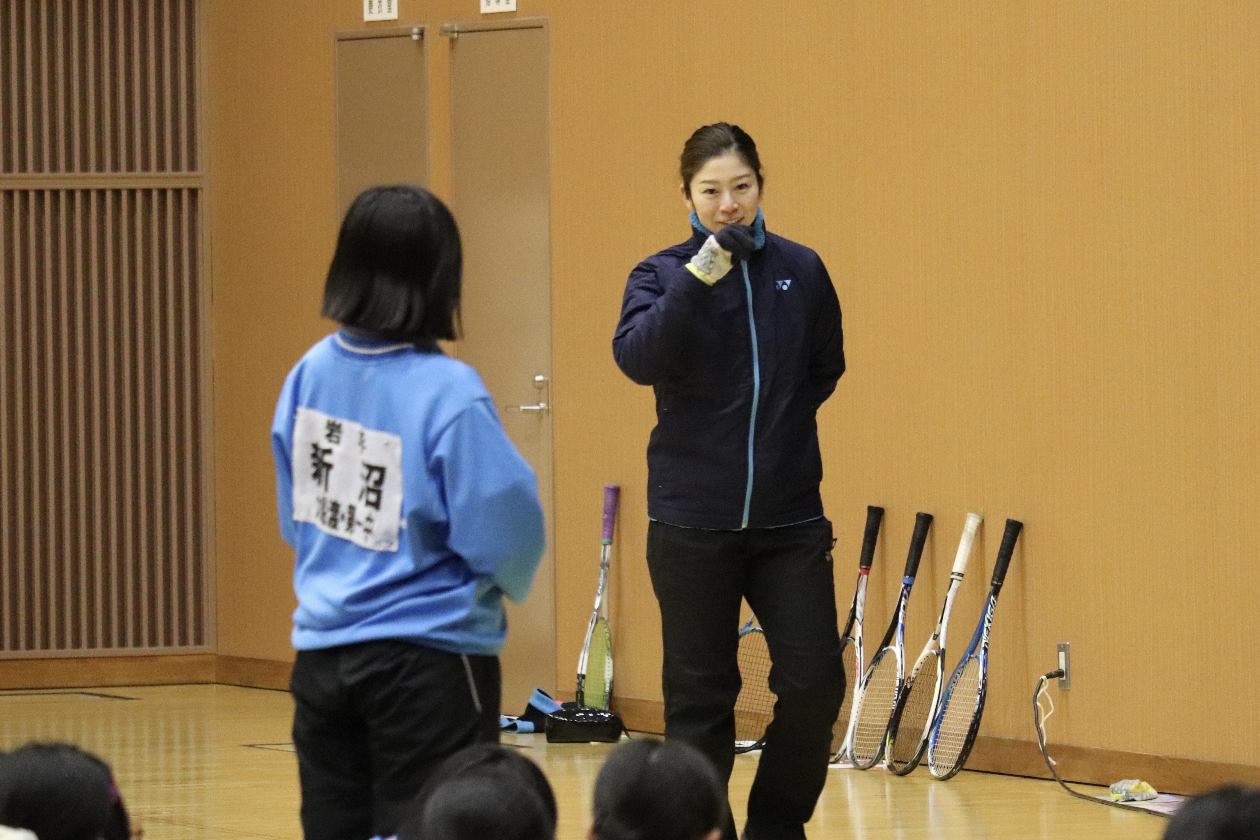 小森トレーナーと大庭選手の指導をうけるお子さんの笑顔をみて