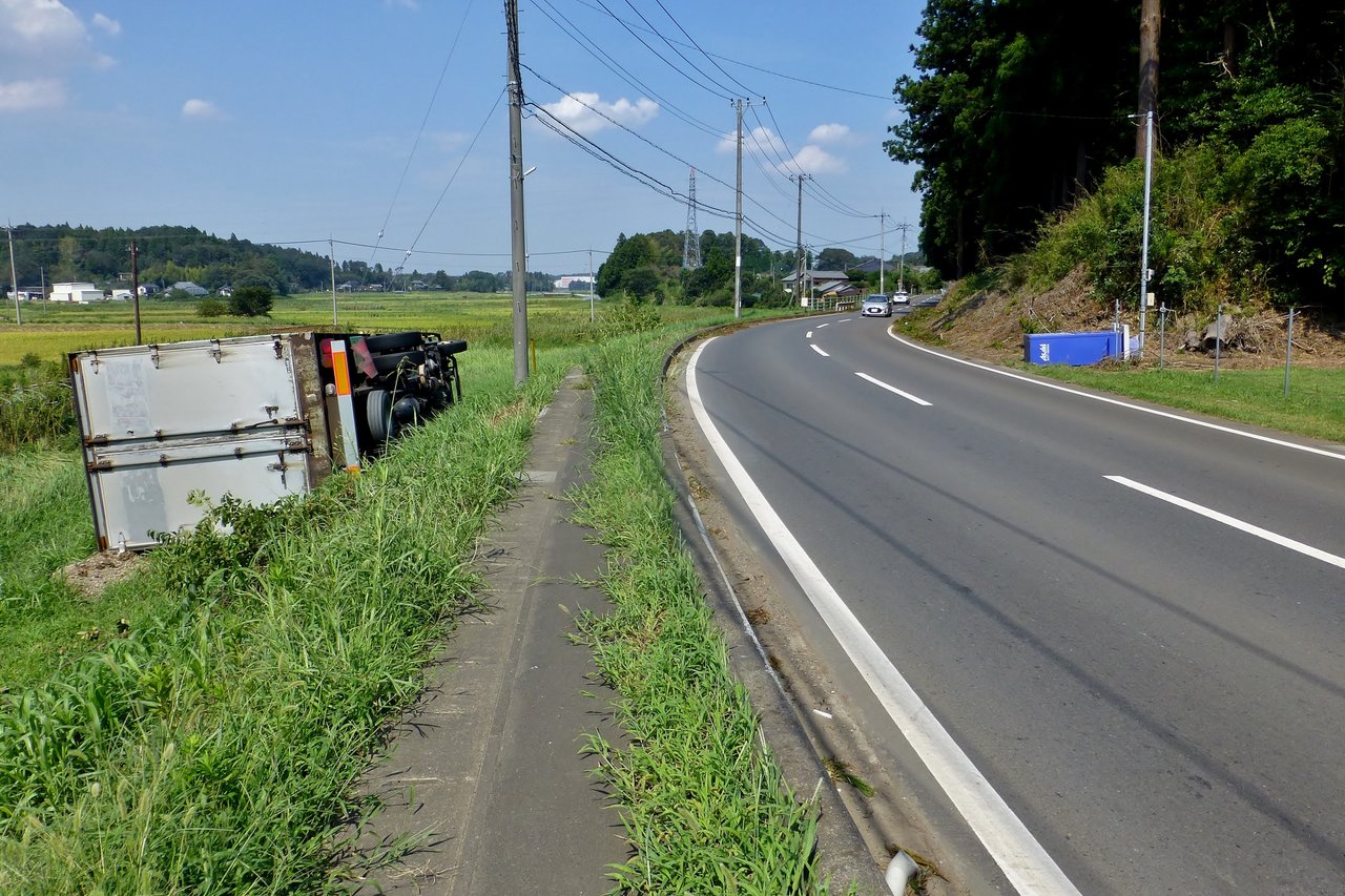 トラックが横転しているのも