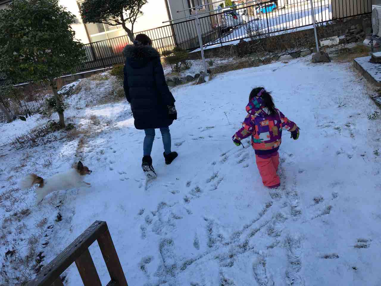 朝起きると少しだけ雪が。