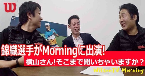 ゆる〜いがコンセプトのWilson TV Morningに錦織が出演しています!この写真の右の横山さんが錦織に雑に質問を浴びせます!その雑さ好きだわ〜^ ^