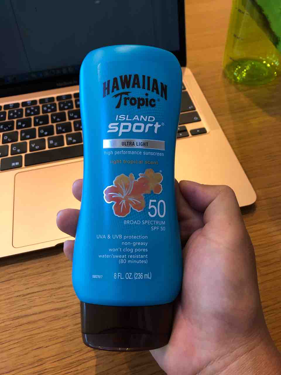 日焼け止めはハワイ土産の南国を感じるこれ使って、テンション上げてこ。