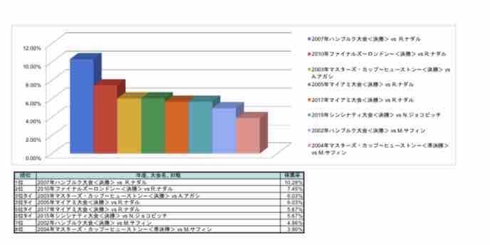 しかし、選挙結果は通好みの試合ばかりですね。1位が2007ハンブルグって全く持って予想外でした。。。クレーでナダルに逆転勝ちした試合で、結構覚えている試合ではありますけどね。