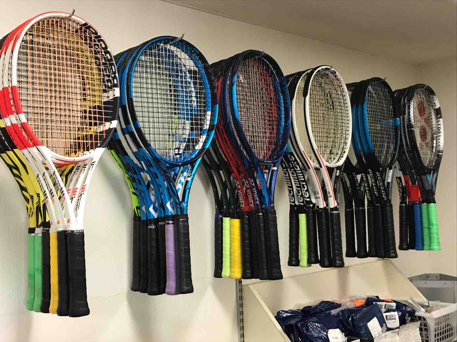 以前とは違い、試打ラケットは各店が有料で購入して用意しています。