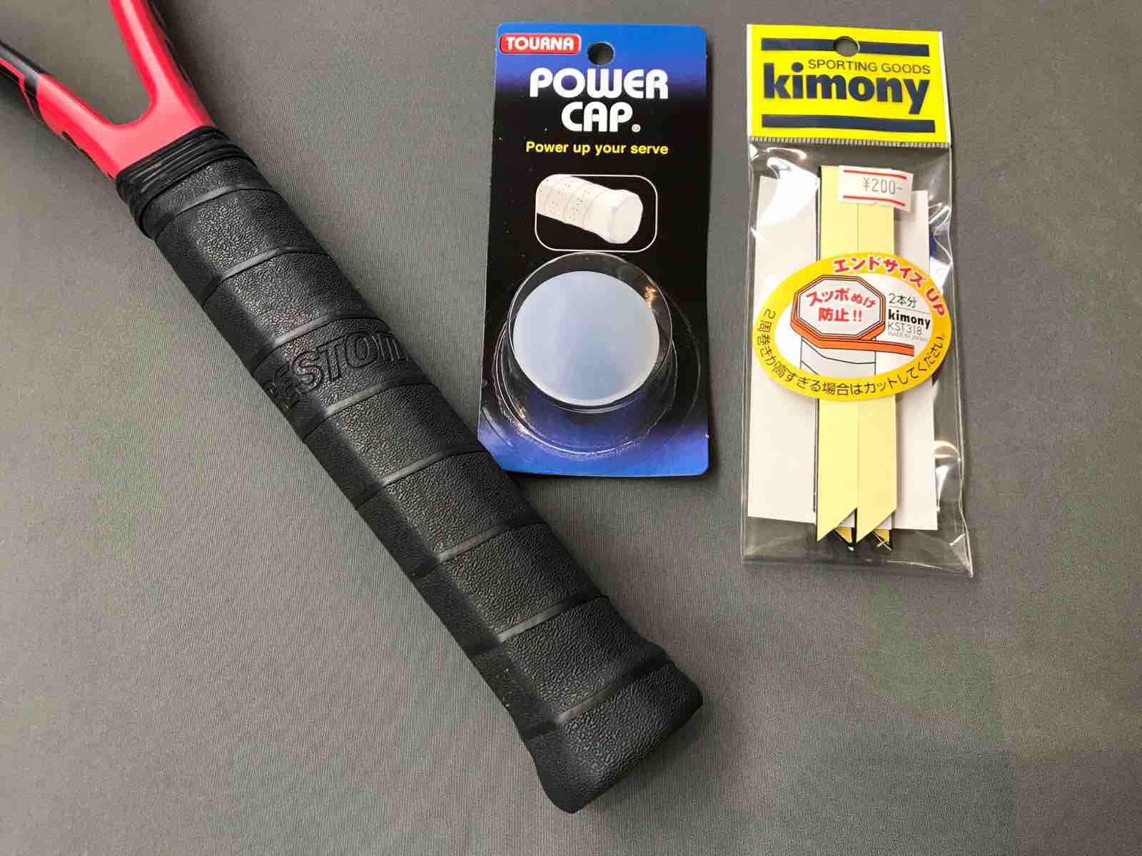 パワーキャップはグリップを握りやすくして、ラケットコントロールをしやすくするものですが、エンドを太くしたいというお客様もいらっしゃいます。