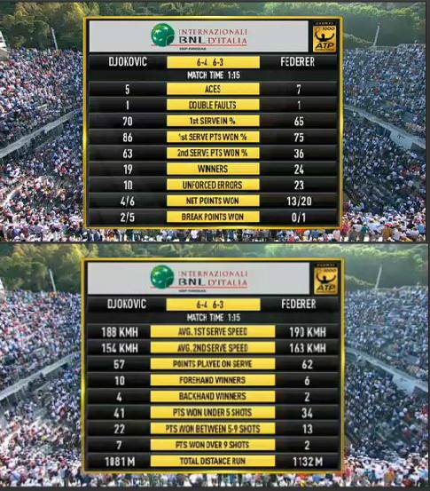 昨日のジョコビッチVSフェレール戦もいいテニスしていましたが、決勝でさらにパフォーマンスをあげてきました。去年のパリバマスターズから、ツアーファイナル、全豪OP、インディアンウェルズ、マイアミ、モンテカルロ、マドリッドは欠場して、ローマと出場したマスターズ1000以上の大会を7連勝中。。。
