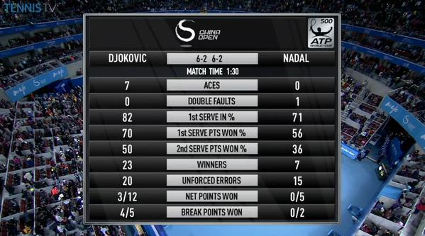 一方の北京ではジョコビッチが6連覇、負けなし29連勝、シーズン8勝目を飾りました。6-2 6-2