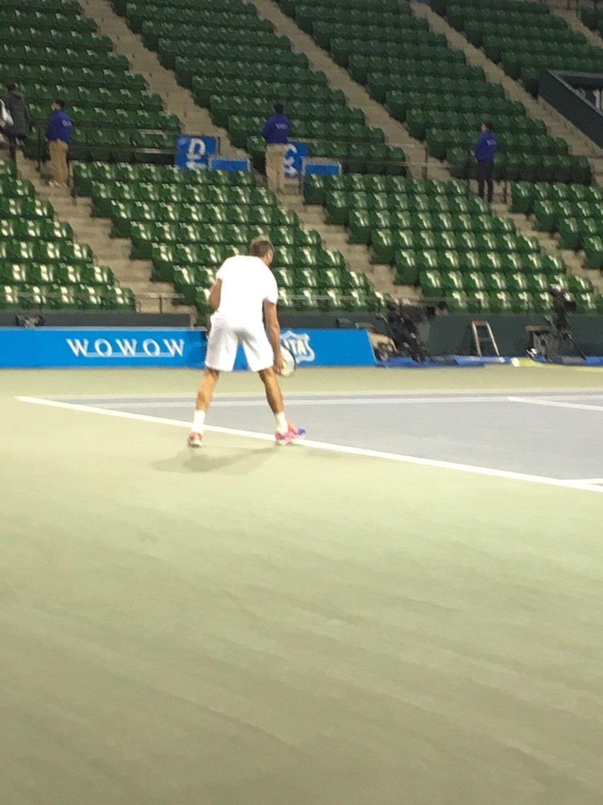 コート上でプレーを見て一人一人のプレイヤーに合うラケットを選び出します。