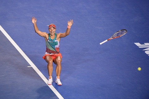 アザレンカ戦もケルバーが1セットとって、2ndセット5-2でアザレンカのセットポイントをリスキーなダウンザライン連発してとり、5-4でもアザレンカがセットポイント(合計5回)をとるのですけどそれも跳ね返して、5ゲーム連取して7-5でケルバーが勝利するんですよね。いや、この開き直って攻めて、決めまくるのは迫力ありました(ハイライトUPしてます)。ファイナルもセレナ相手に気持ちを強く持って攻めてましたね!