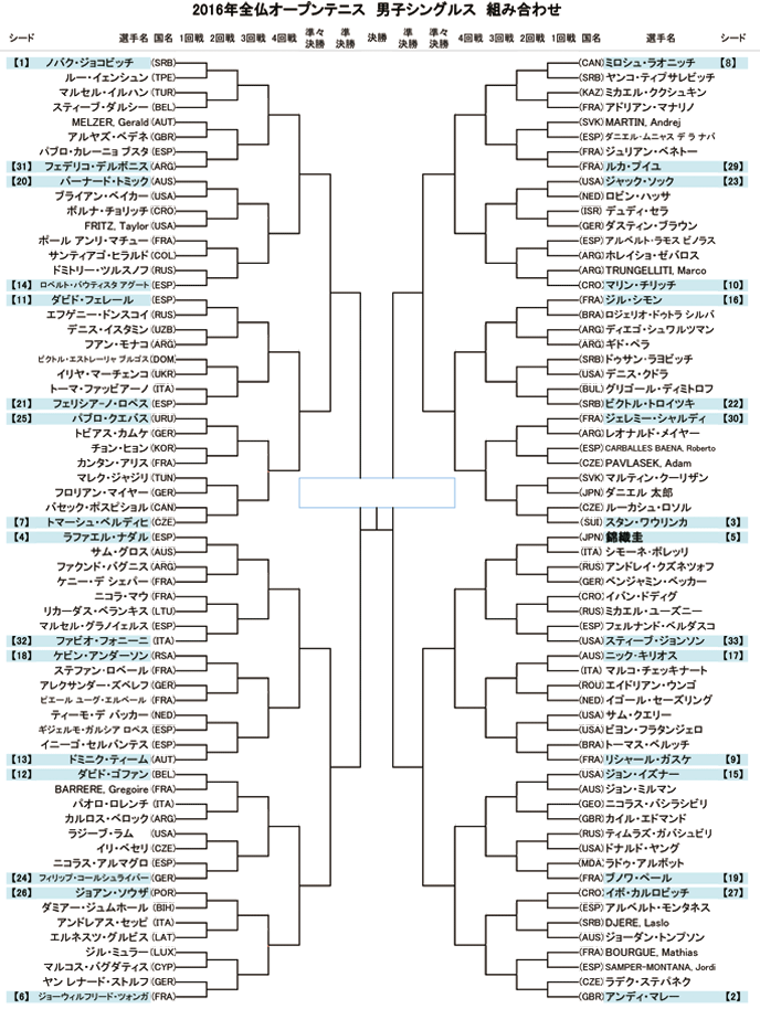 ドロー全体をみてそれほど大きな偏りもないように思います。上位シードが順当に上がってくると予想します。