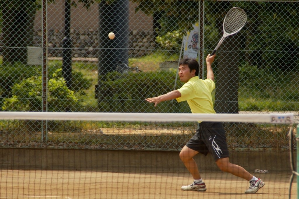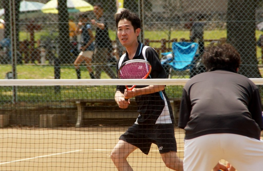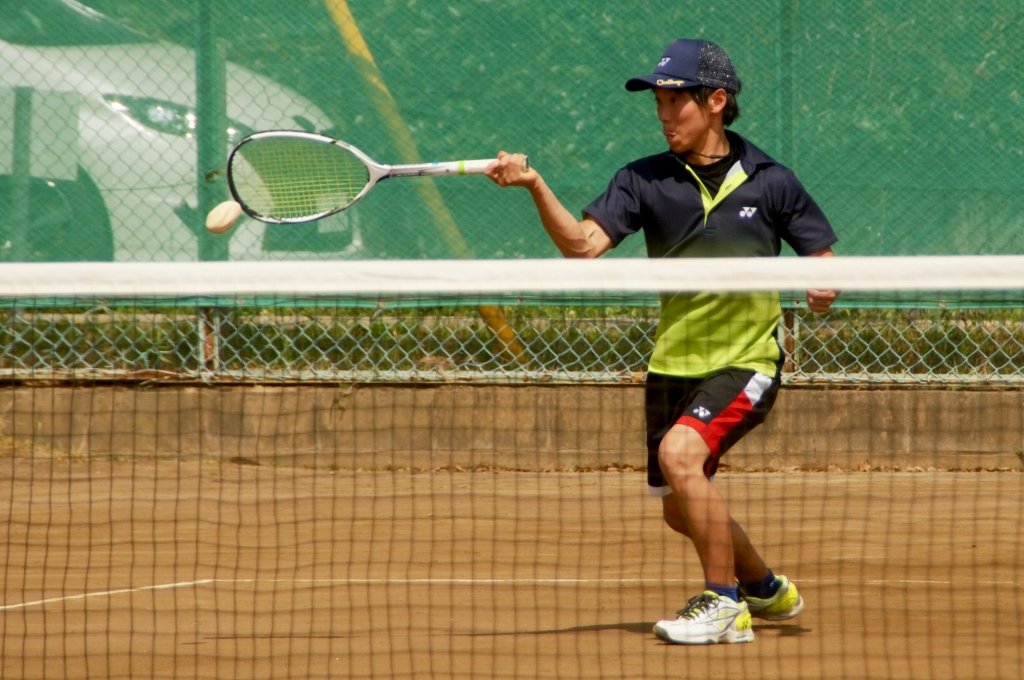 ガスケ選手は、バックハンドを片手で打つタイプ。