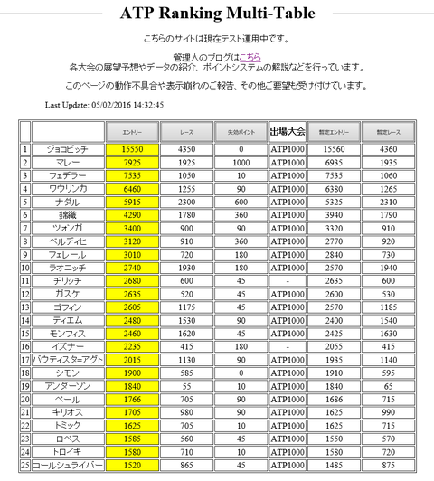 ただ、これを機に思い切って変更しようということで、新しいサイトのタイトルは英語表記の「ATP Ranking Multi-Table」としました。