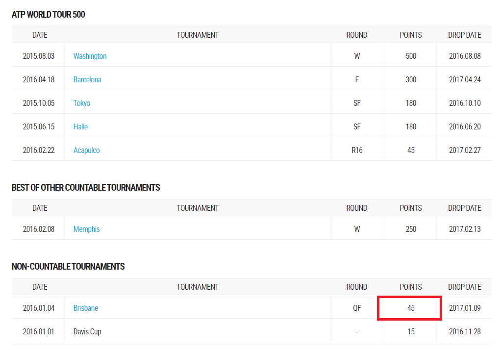 つまり、2016年1月4日のブリズベンで獲得した「45(ポイント)」が錦織のNEXT BESTなのです。