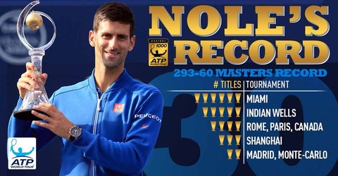 ジョコビッチはマスターズ30回の制覇となります。すごい偉業ですね。あとはシンシナティを制すると、マスターズ全大会制覇ともなります。今年こそ達成しそうですね??