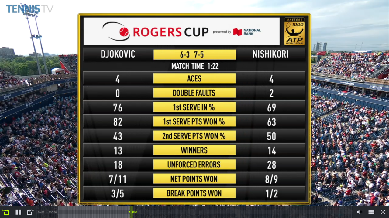 "Today I think he stepped it up," said Nishikori. "He raised his level a lot from these past couple days. He played really deep, and he didn't give me any free points. He was especially serving really well, so I didn't have many chances for my return game. I was really feeling the pressure every game.