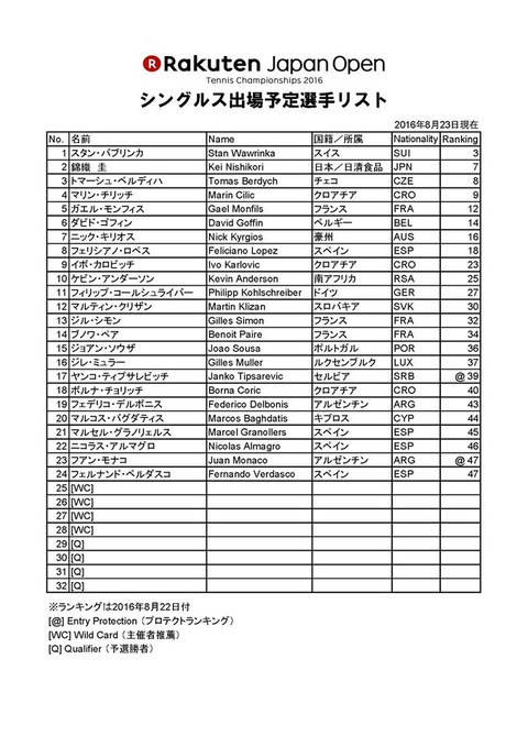 BIG4の名前はないですが、バブリンカ、錦織をはじめとしてTOP10選手が4人出場で、他にもモンフィスなどが登録しています。なかなかいいメンバーですね。