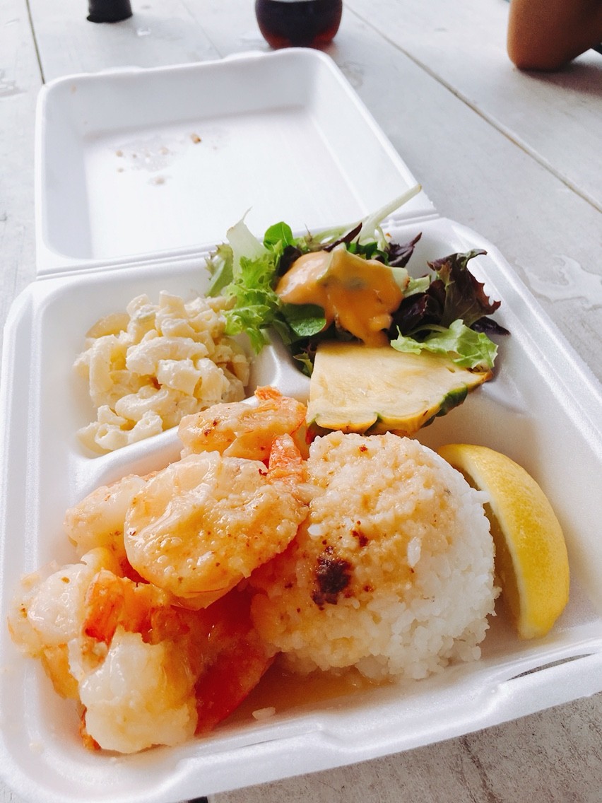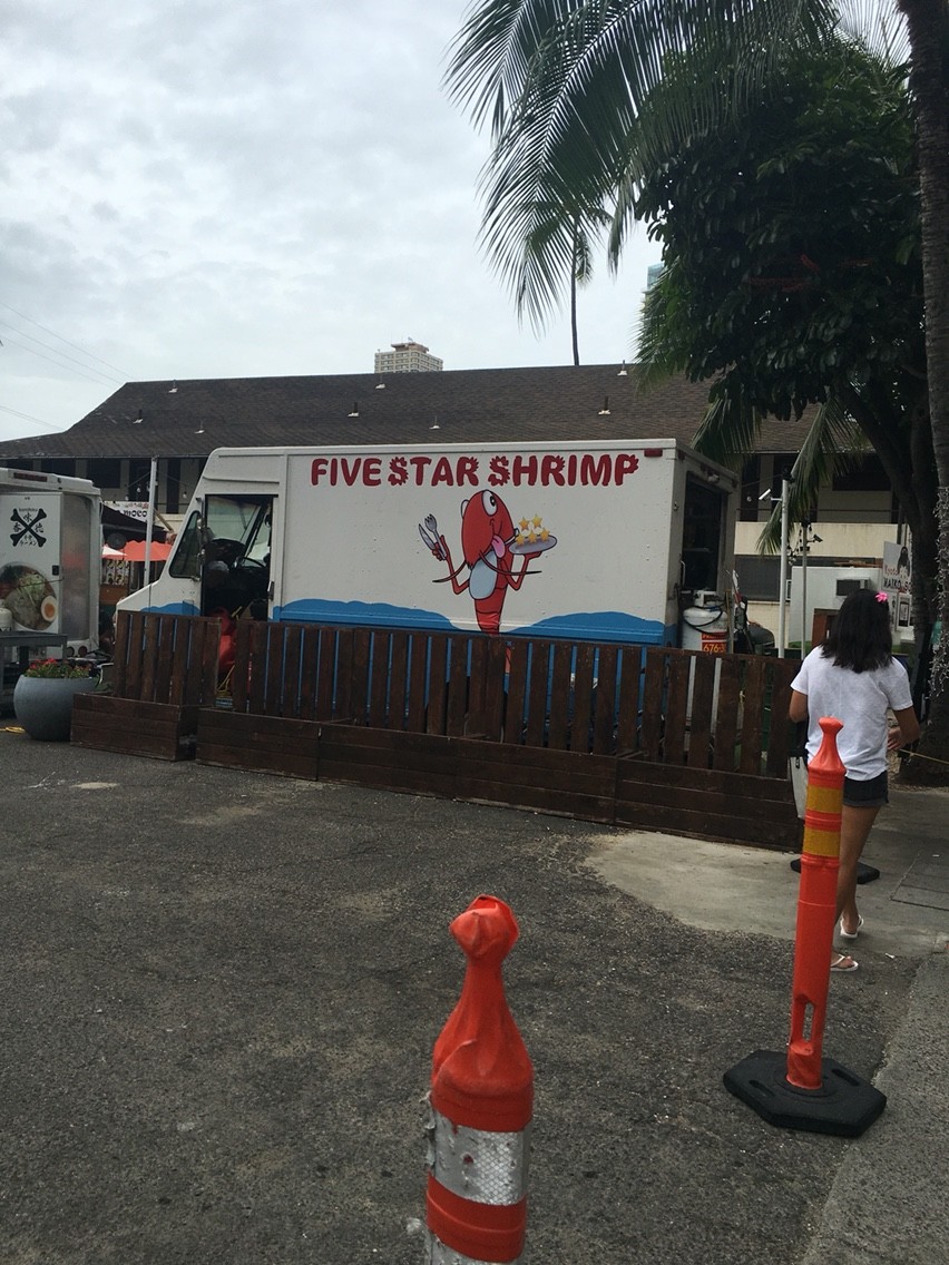 昼食はまたフードトラックの所へ行き、ガーリックシュリンプ!