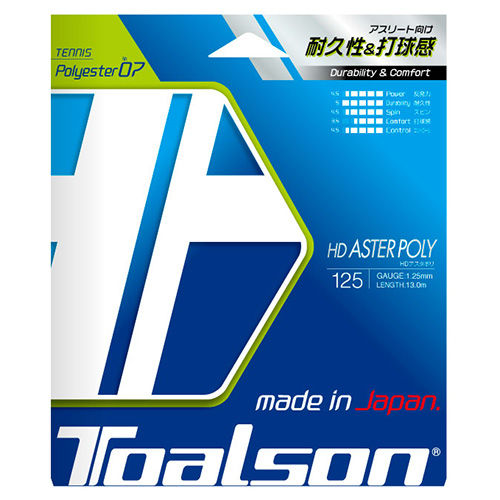 ソフトな打球感とスピードを生み出す「アスタリスタコア」に耐久性に優れた「HDポリエステル」を搭載することで、バランス性能に優れたアスリート向けストリングです。