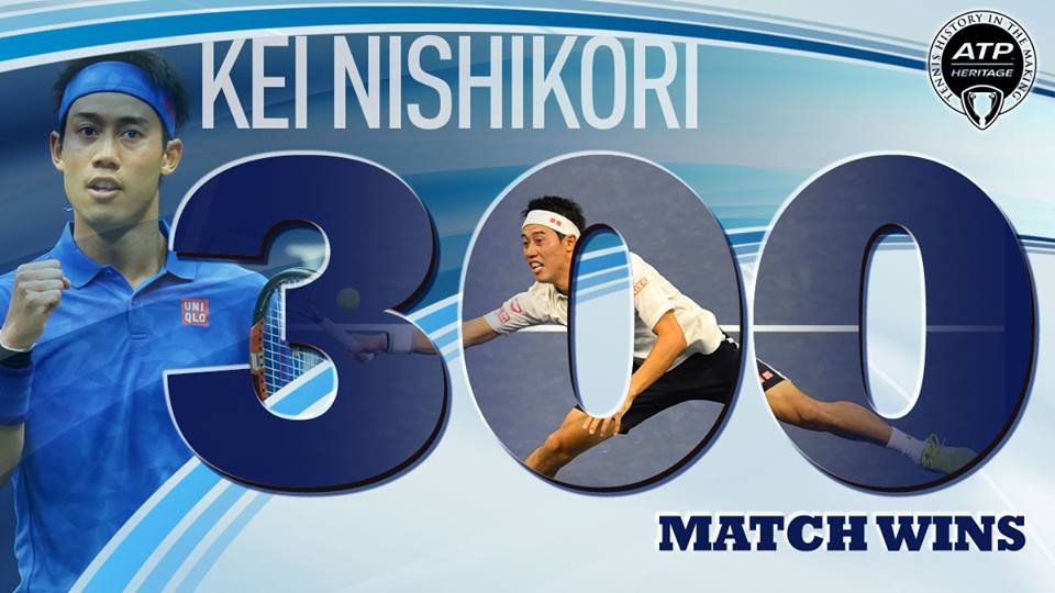 この勝利で錦織は通算300勝を達成です!!(ちなみにフェデラーは1080勝)