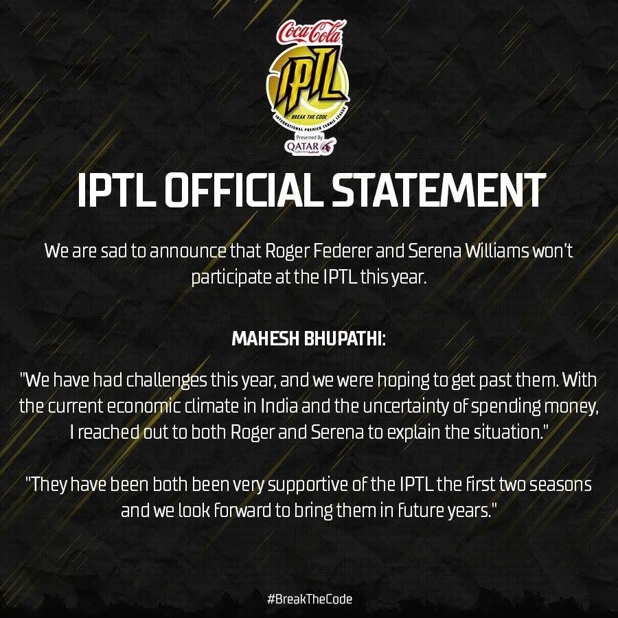 創設者のプパシからの声明ですが、「我々には今年チャレンジが多々あった。インドでの経済的な状況と金銭的な問題から、ロジャーとセリーナに状況を説明するに至った。彼らは最初の2シーズンとても協力的であり、我々は将来的に彼らを連れ戻したいと思っている」