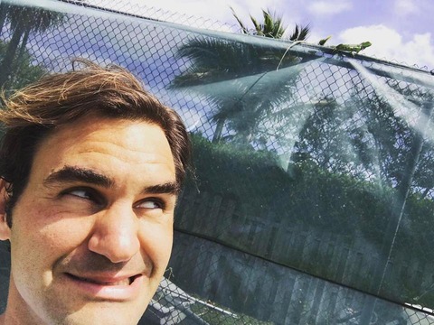フェデラーの練習コートにイグアナが?!フェデラーの表情も最高ですね^^