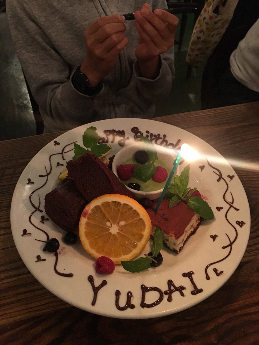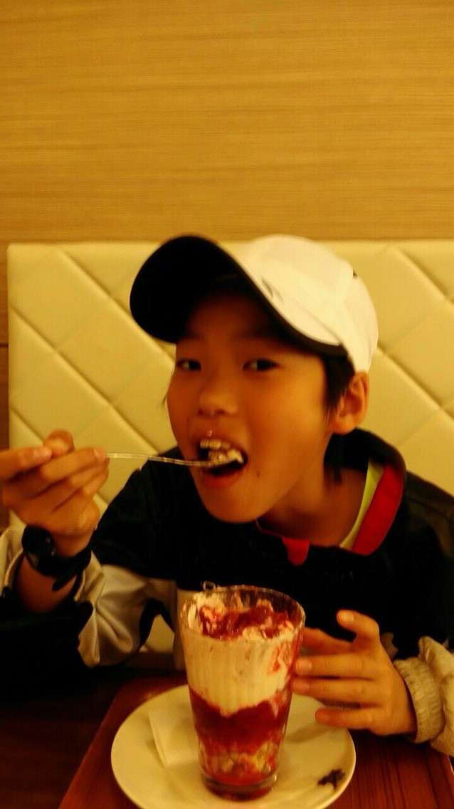 ユウダイにイチゴのパフェを奢らされていました(笑)