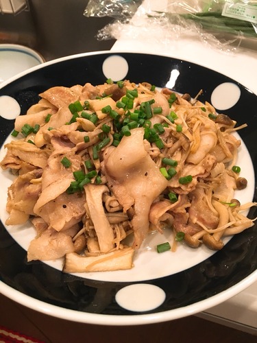 デリッシュキッチン見ながら、きのこと豚バラ肉の料理。