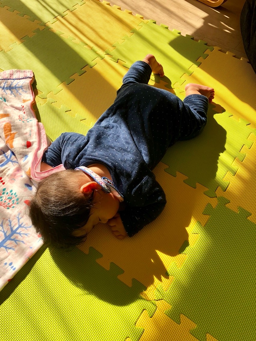そして遊び疲れたようで、指を吸いながら寝てしまいました