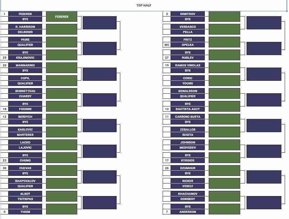 早速のフェデラーの対戦相手ですが、今回ドローは恵まれたかなぁと思います!