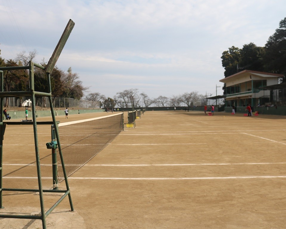 小田原高校ソフトテニス部が日ごろの練習を行うのは、高校のすぐ前にある『城山庭球場』です。クレーコート8面を常設する城山庭球場は、コートに「ラインテープ」と呼ばれるテープを釘で留めたものを整備しておらず、『人口によって石灰で描く』珍しい方法をとっています。