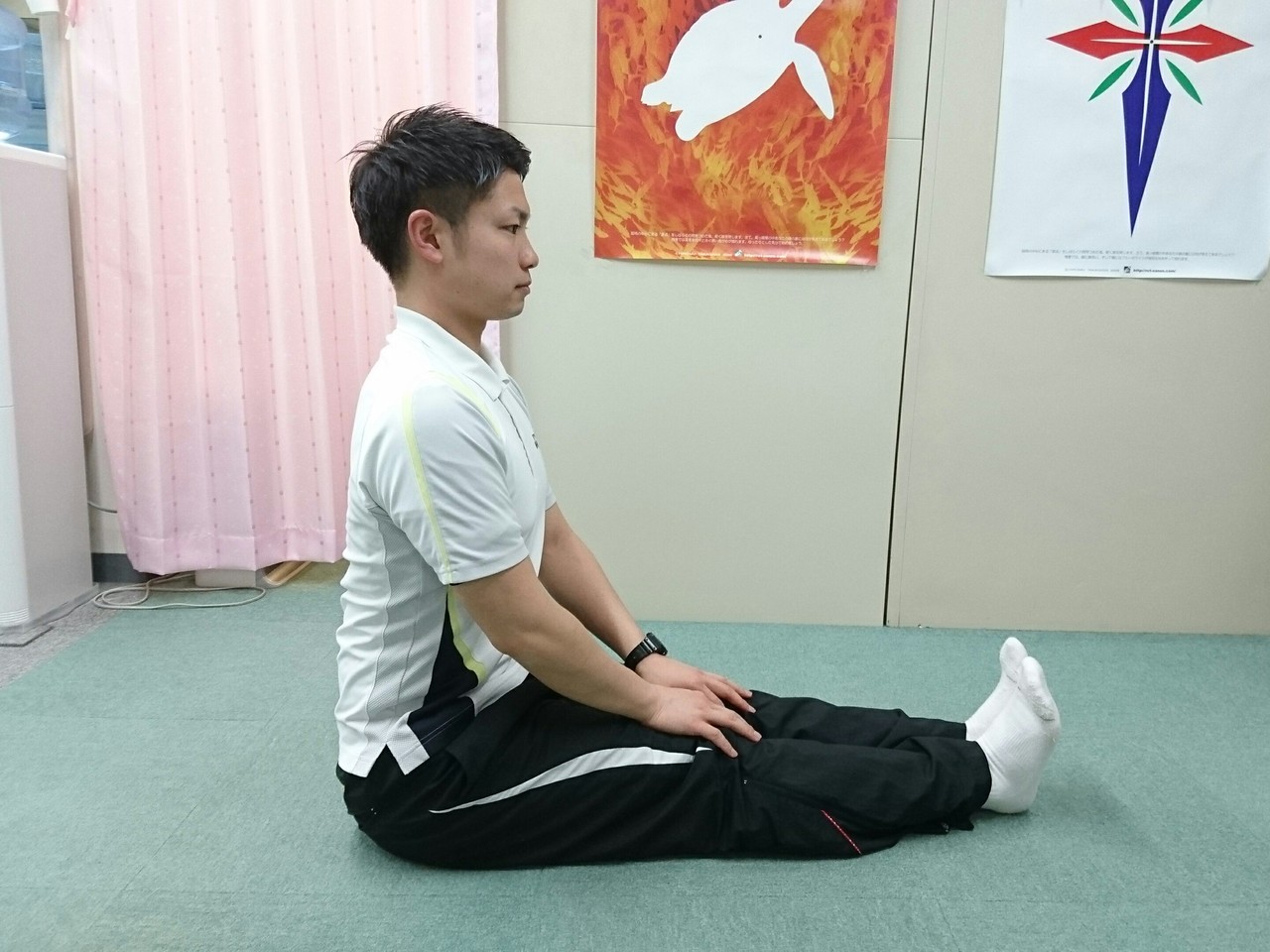 ・背筋を伸ばして、立てている膝を両手で抱えます。